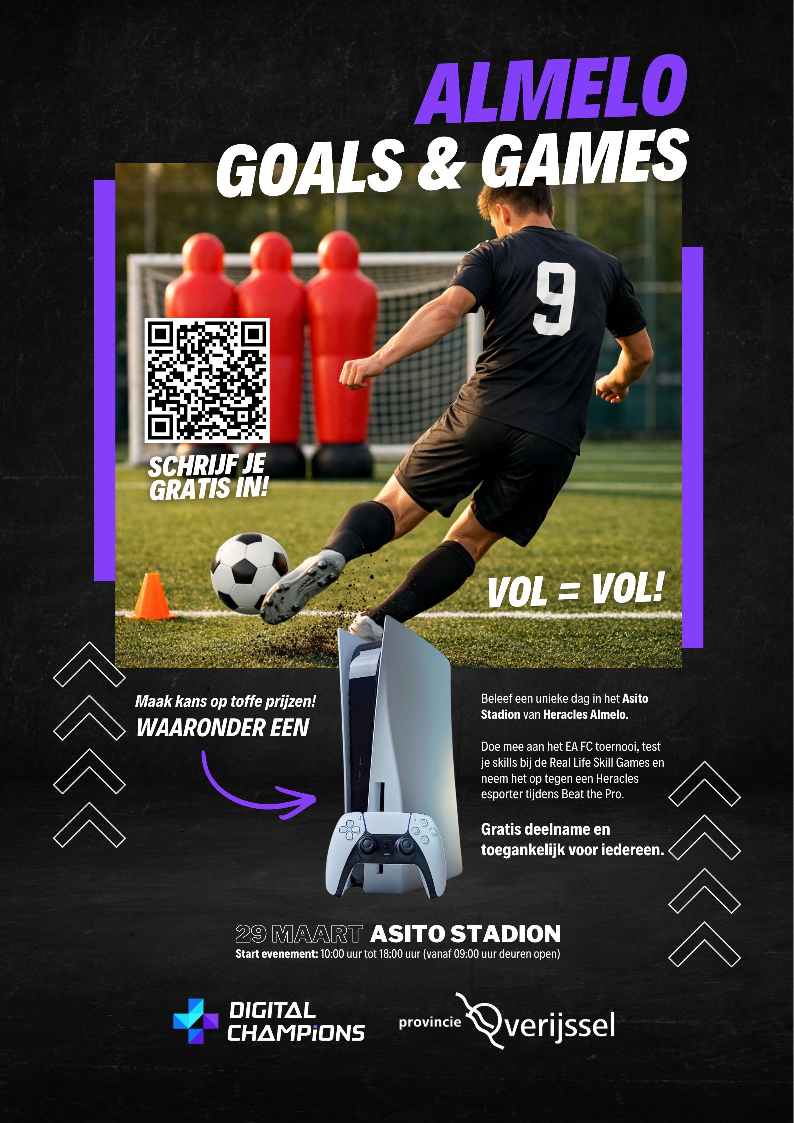 Ja. Deelname aan Almelo Goals & Games is volledig gratis. Het evenement wordt mogelijk gemaakt door Digital Champions in samenwerking met verschillende partners.
