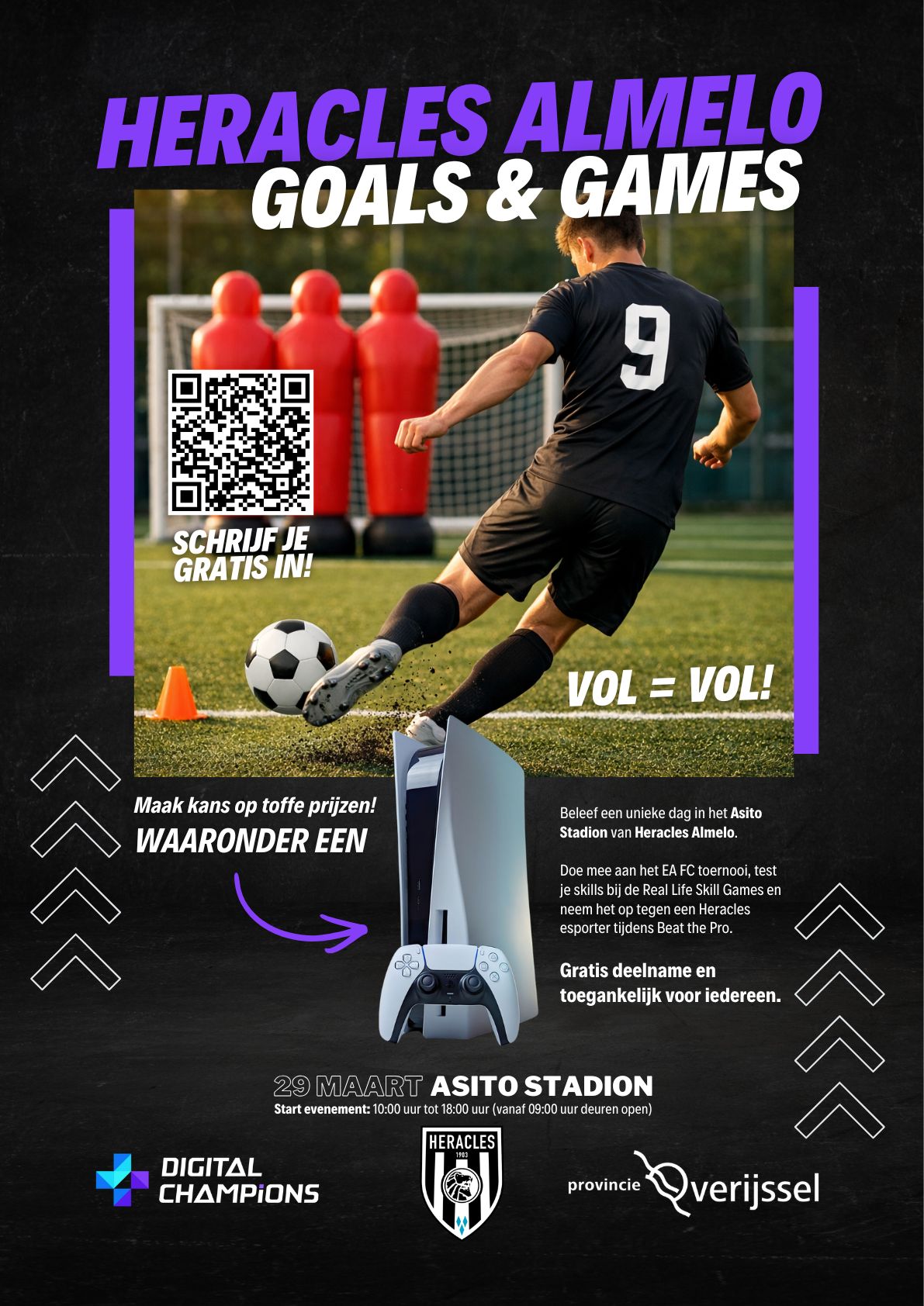 Op 29 maart 2026 organiseert Digital Champions een bijzonder evenement in het Asito Stadion van Heracles Almelo. Tijdens Heracles Almelo Goals & Games komen gaming, sport en competitie samen op een locatie die normaal alleen toegankelijk is voor spelers en fans op wedstrijddagen.